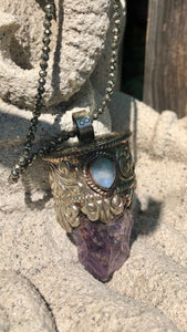 Citrine, Rainbow Moonstone with Pyrite Statement Piece