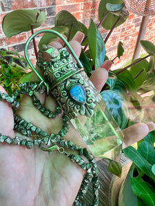 All of these gorgeous pieces are designed by me and hand-crafted in Nepal. They are very unique and different one-of-a-kind pieces. We strive for very unique and different hand crafted pieces in all that we create! All items are cleared and blessed before shipping.